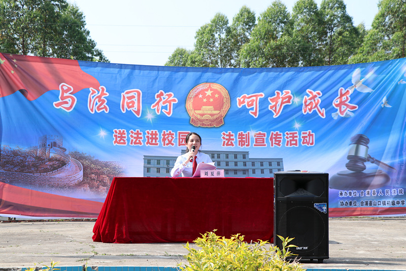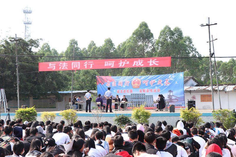 4月9日,日博备用网址妇女儿童维权岗的工作人员来到了“送法进校园”法制教育活动的第一站——山口镇初级中学,开展了主题为“与法同行,呵护成长”的法制宣传活动。山口镇位于两广交界,人口流动性较大,各类人员鱼龙混杂,本地区涉毒犯罪、暴力犯罪等案件发生率逐年升高,涉案被告人年龄呈逐渐年轻化态势。本次法制宣传活动旨在引导未成年人学法、懂法、守法、用法,在源头上预防未成年人犯罪。